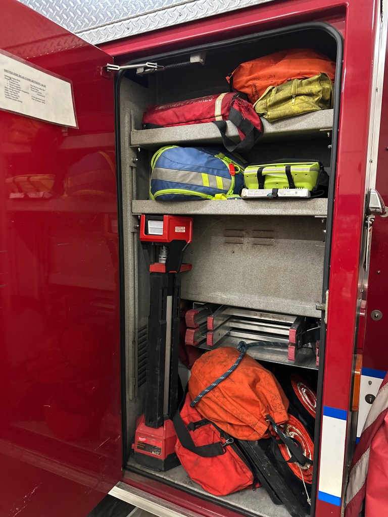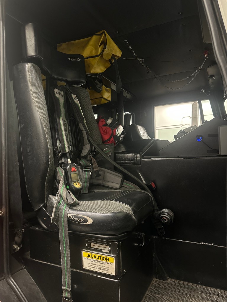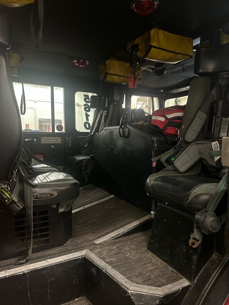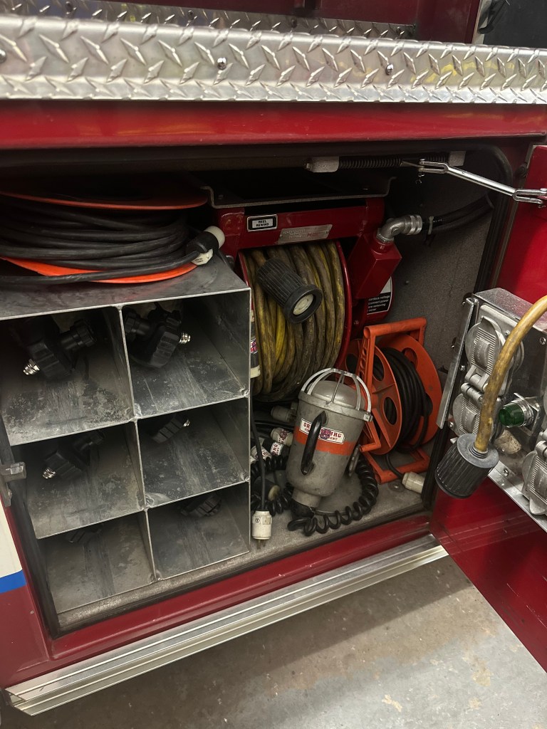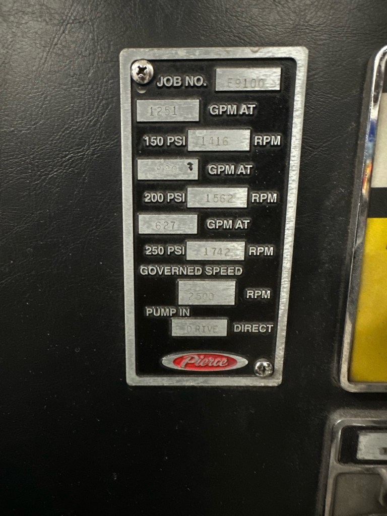 Engine 56-10 1995 Pierce Saber This piece of apparatus is first due on all fire types. Seating for 6 personnel. 1250 GPM Pump750 Gallon Tank Equipped with: 1000 ft. of 5″ hose 300ft. of 3″ hose (2) 1 ¾ attack lines (both 200 ft.) (1) 2 ½ attack line (200 ft.) Pre-piped deck gun top mounted PPV Fan Portable Monitor High Rise Kit First Aid Equipment Heat Detector CO Dectector
